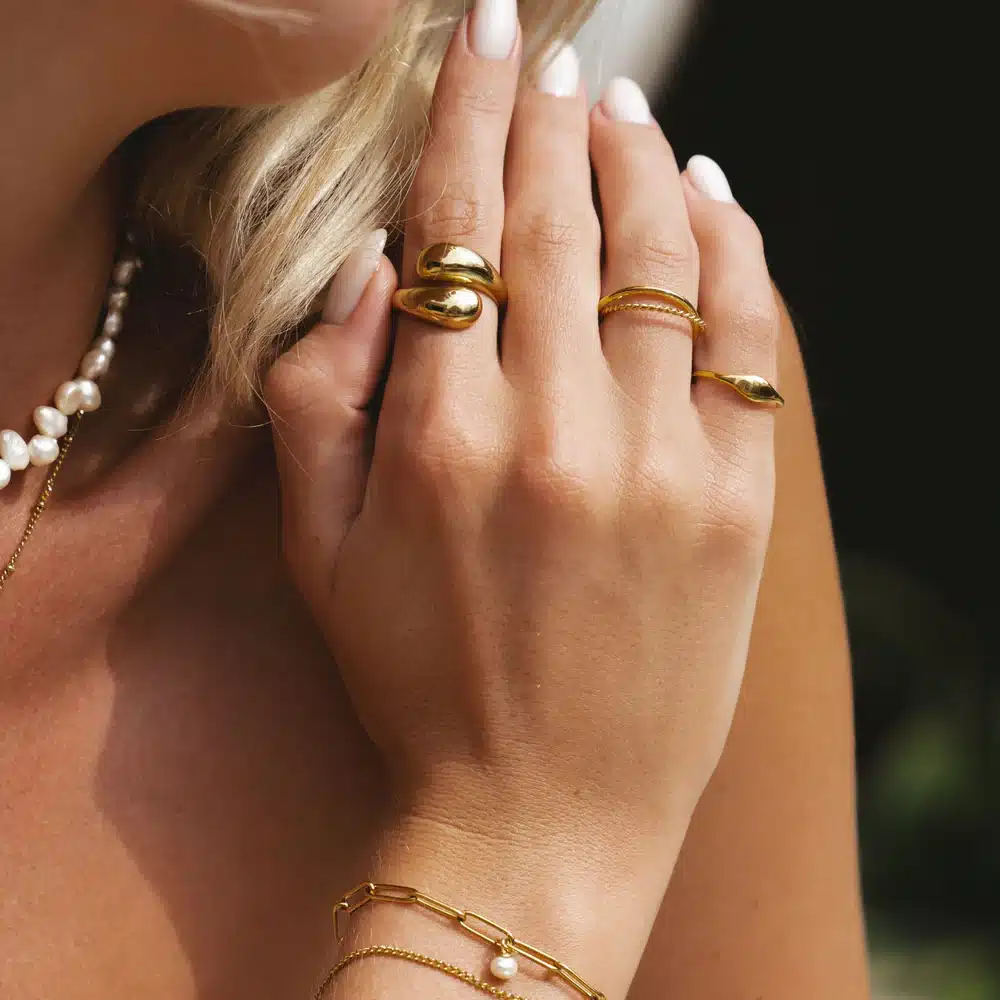 Minimaliste mais audacieuse, cette bague en acier inoxydable doré séduit par sa forme organique fluide et son éclat moderne. Sa silhouette ouverte, à la fois douce et contemporaine, épouse naturellement le doigt pour un confort optimal et un style affirmé.