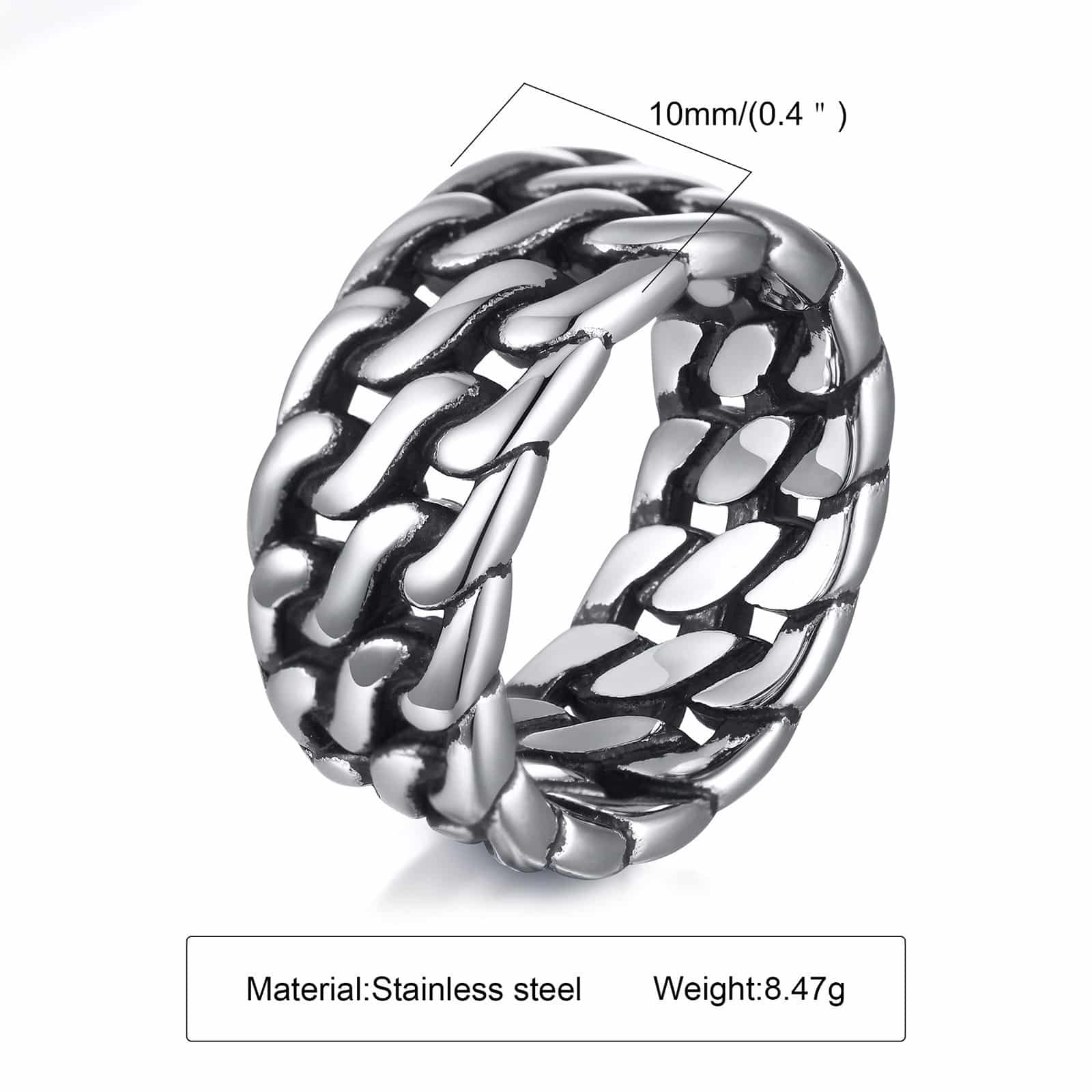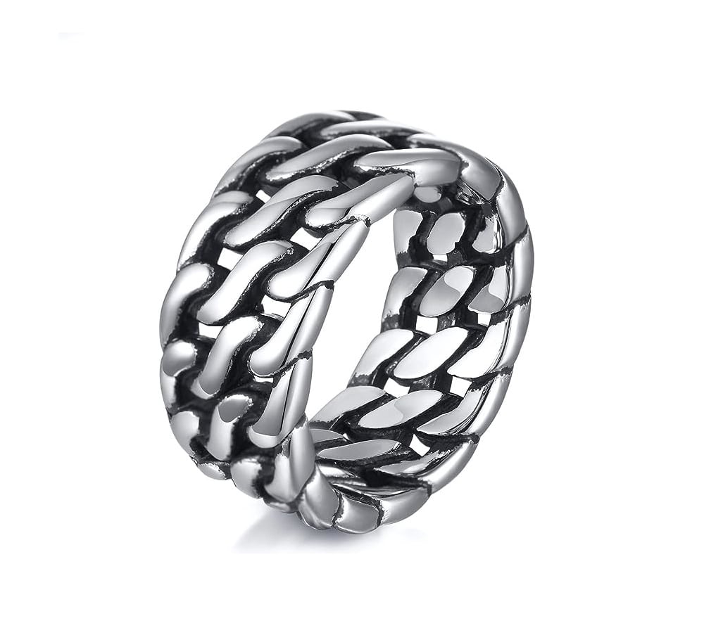 Bague Anneau Homme chaine torsade Acier inoxydable