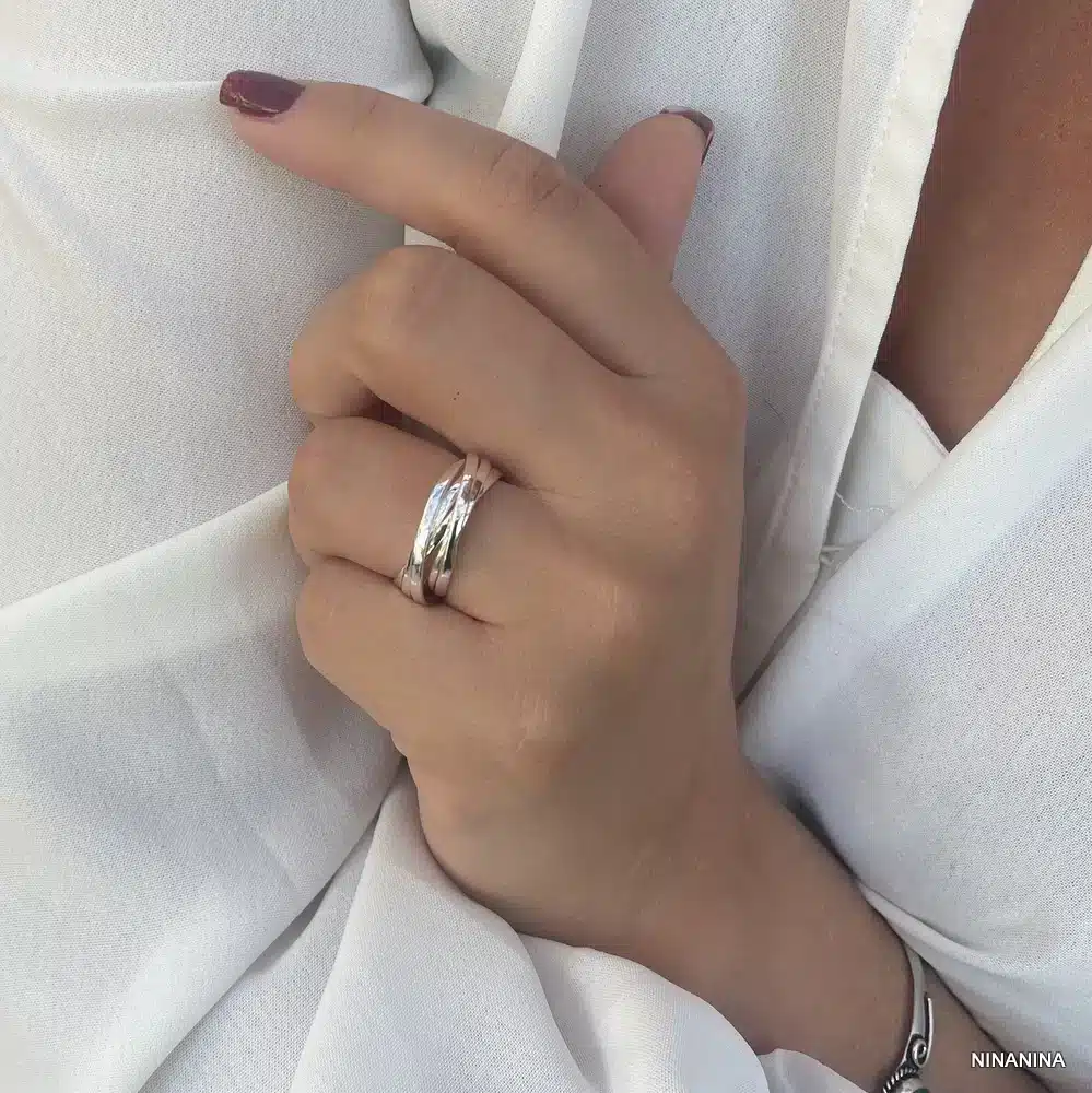 Bague Anneaux Argent 925 Plaqué Entrelacés Femme