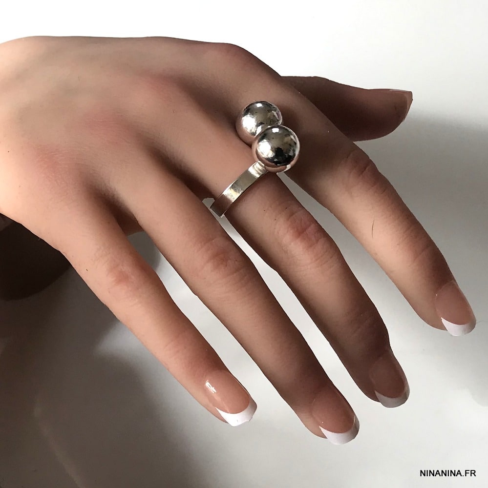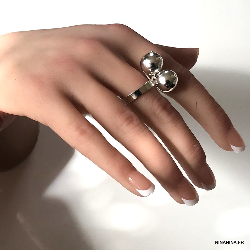 CetteĀ bague boules en plaquĆ© argent dāune qualitĆ© exceptionnelle a Ć©tĆ© fabriquĆ©e main dans notre atelier du sud de la France. Elle est rĆ©glable pour s’ajuster Ć tous les doigts de votre main.