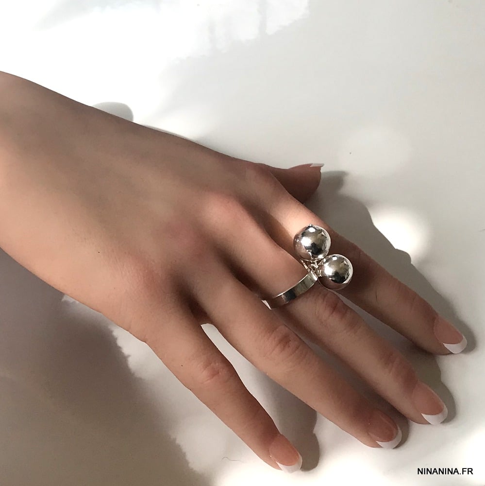 Ajoutez une touche d’originalitĆ© Ć votre main avec cette imposante Bague boules 12mm plaquĆ© argent ajustable composĆ©e de deux perles rondes de 12mm de diamĆØtre montĆ©es sur un anneau fil plat rĆ©glable. Ā Elle saura se faire remarquer cetteĀ Bague en plaquĆ© argent qui enlacera votre doigt avec dĆ©licatesse et robustesse et vous charmera Ć coup sĆ»r! GrĆ¢ce Ć sa taille rĆ©glable elle sāadaptera Ć votre doigt.