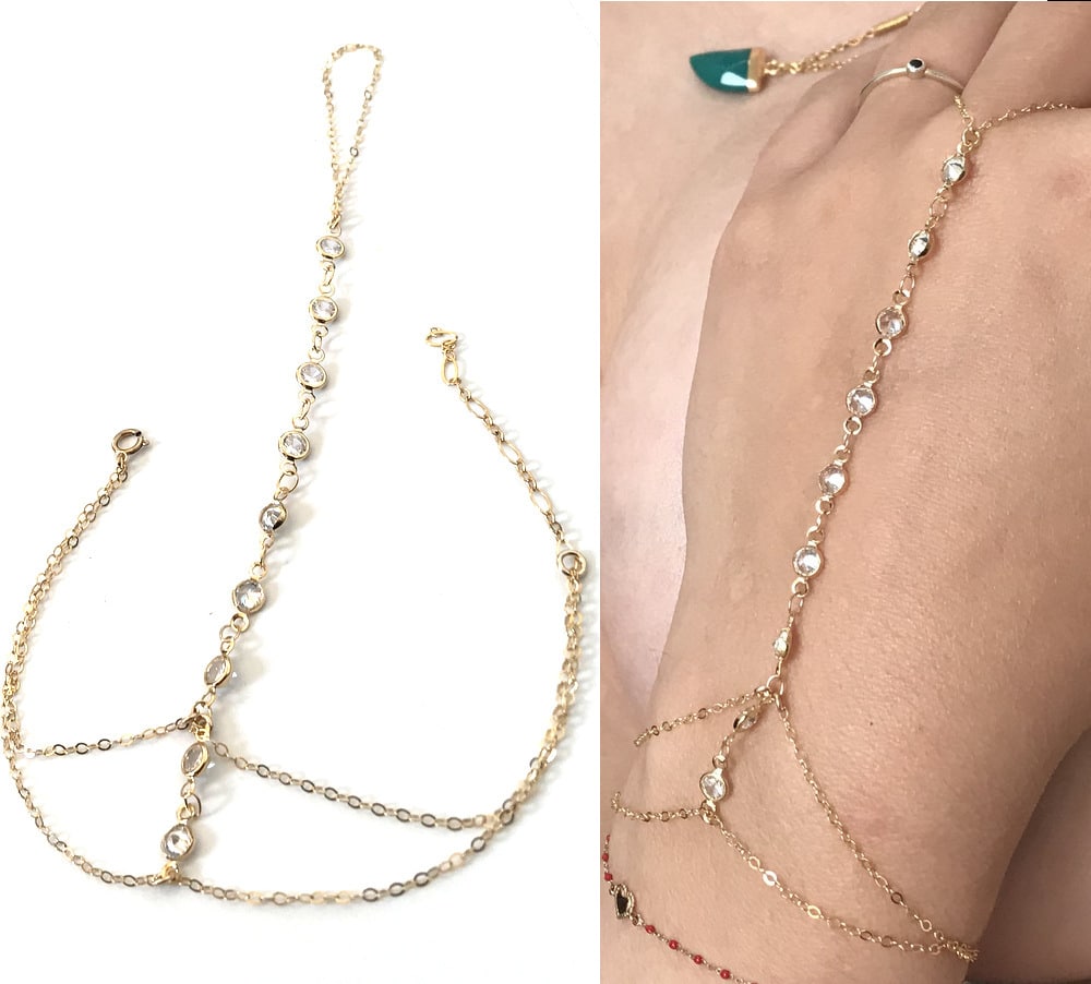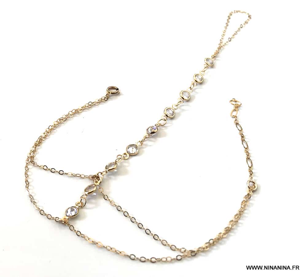 Bague Bracelet femme plaquĆ© or – chaine de main zirconium