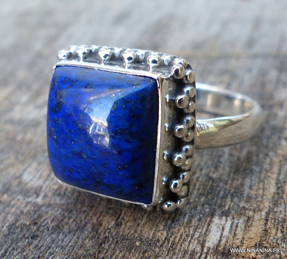 Bague carrée saphir bleu Indien et Argent 925 massif
