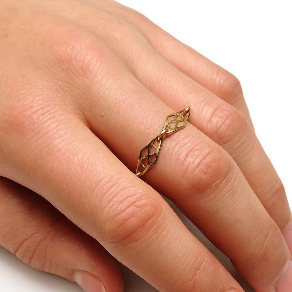 Bague chaine plaqué or 14 carats artisanale pour femme motifs losanges délicats