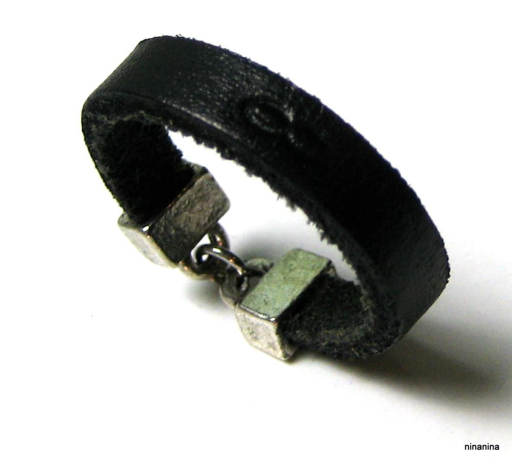 Que de symbole, oui, mais des symboles qui comptent lorsqu’ils sont offerts par la personne que l’on aime! Ce bijou en cuir femme et homme personnalisée symbole infini composée d’une lanière de cuir noir gravée avec le symbole infini et reliée par des embouts en métal argenté. Destiné à un homme comme à une femme, elle conjugue classe, originalité et romantisme et saura véhiculer son message d’amour universel au doigt de votre bien aimée! Elle fera par ailleurs un Cadeau parfait pour la St Valentin ou les Noces de cuir qui célèbrent le 3ème anniversaire de mariage.