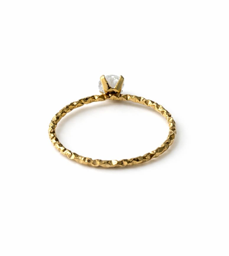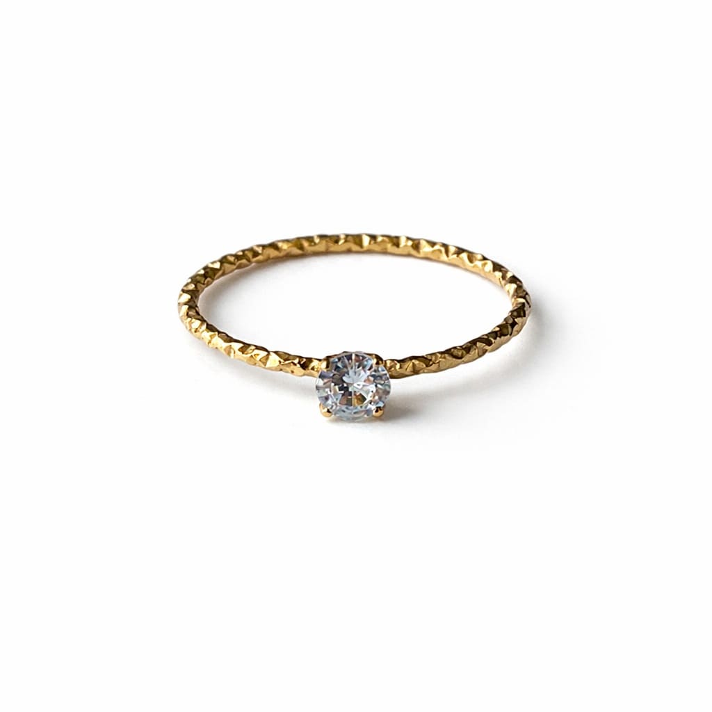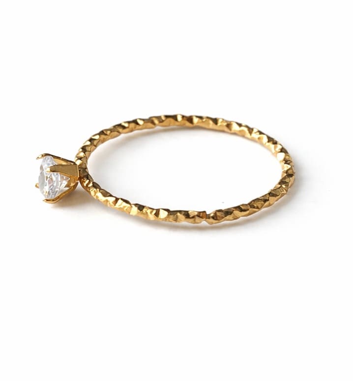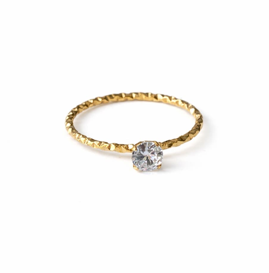 Bague De Phalange Femme – Anneau Acier Inoxydable Doré Texturé Et Zirconium Serti