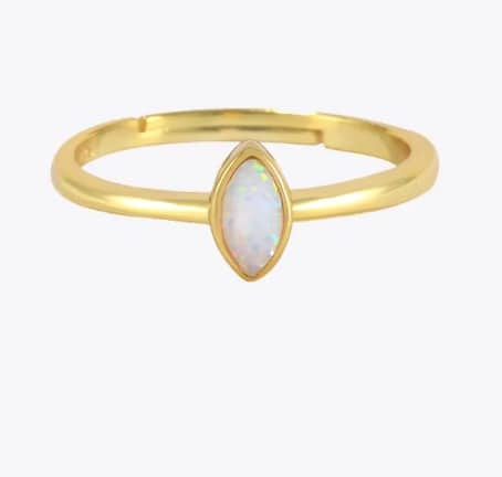 Vous tomberez facilement amoureuse de cette magnifique Bague Opale réglable forme marquise Argent 925 plaqué or.