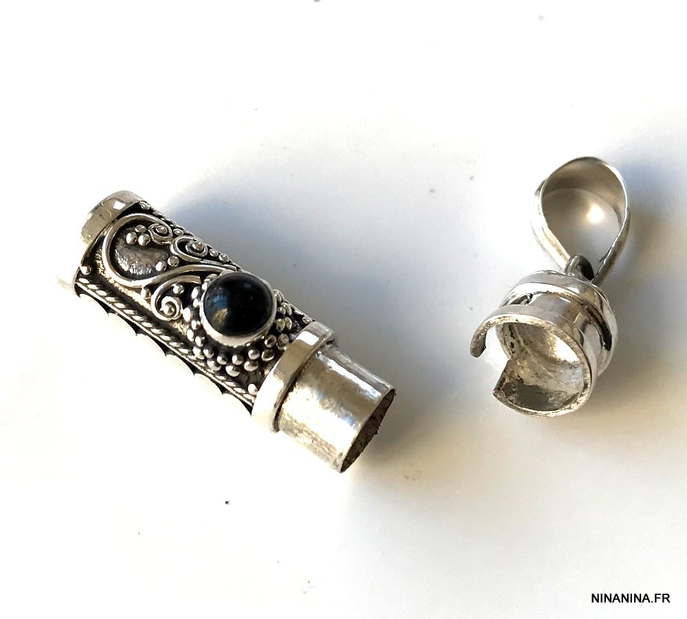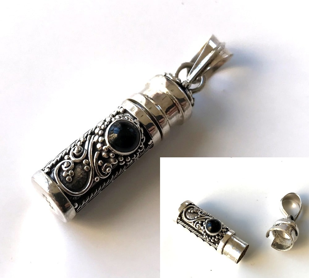 Bijou funéraire pendentif urne artisanal – Collier Argent 925 et onyx noire véritable