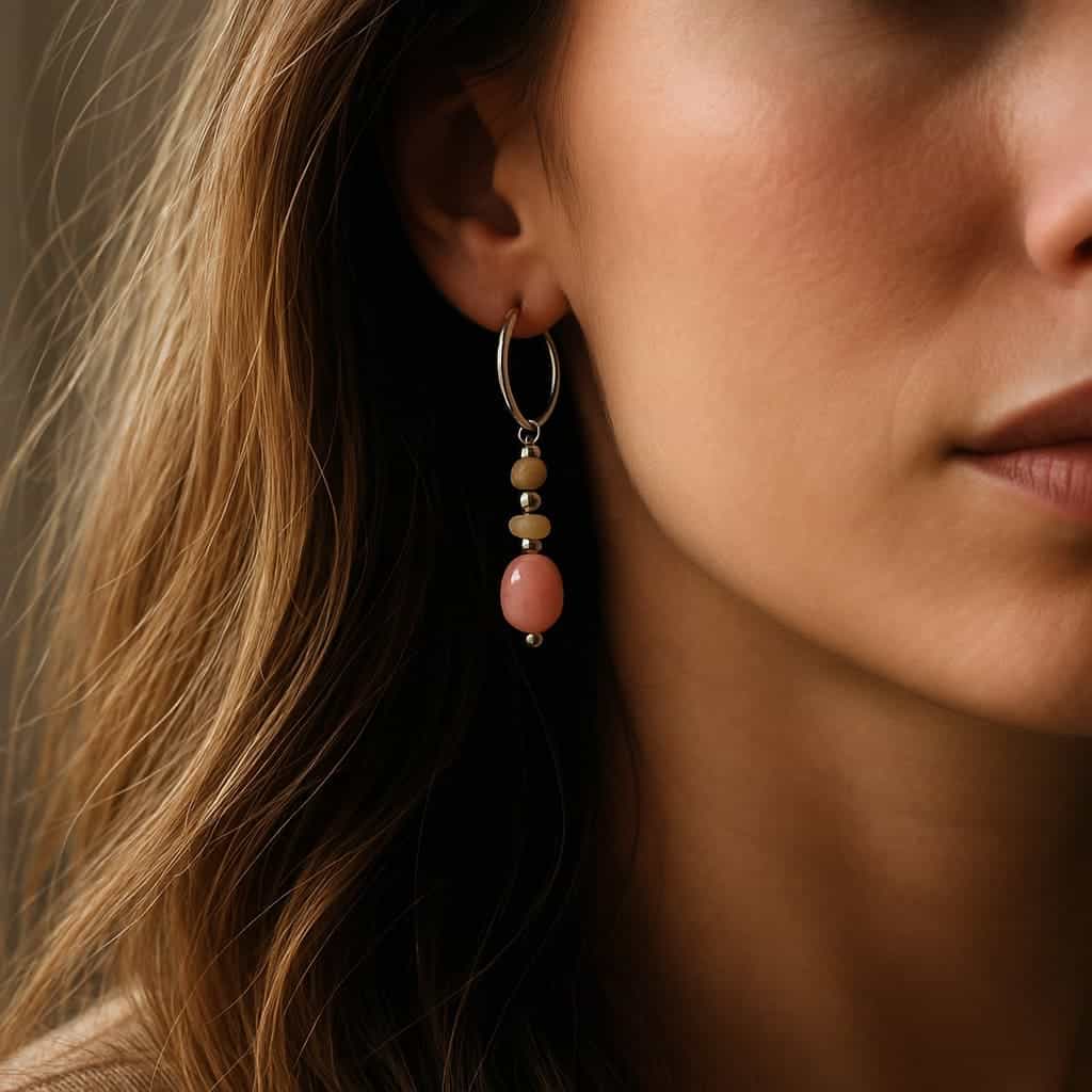 Porter des boucles d’oreilles en opale rose aide à retrouver calme, douceur et harmonie dans le quotidien.