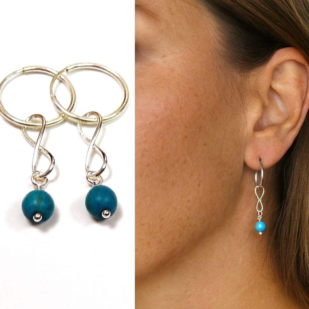 Boucles d’oreilles créoles infini en argent et perle turquoise – Bijou artisanal fait main