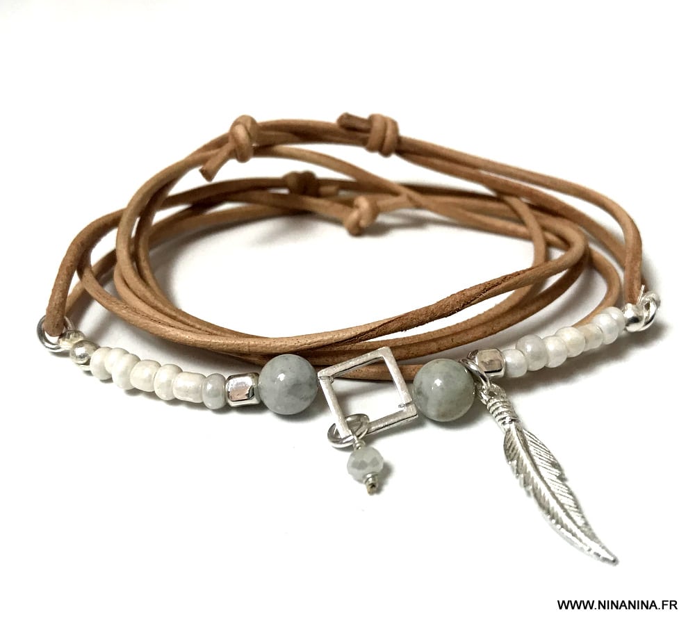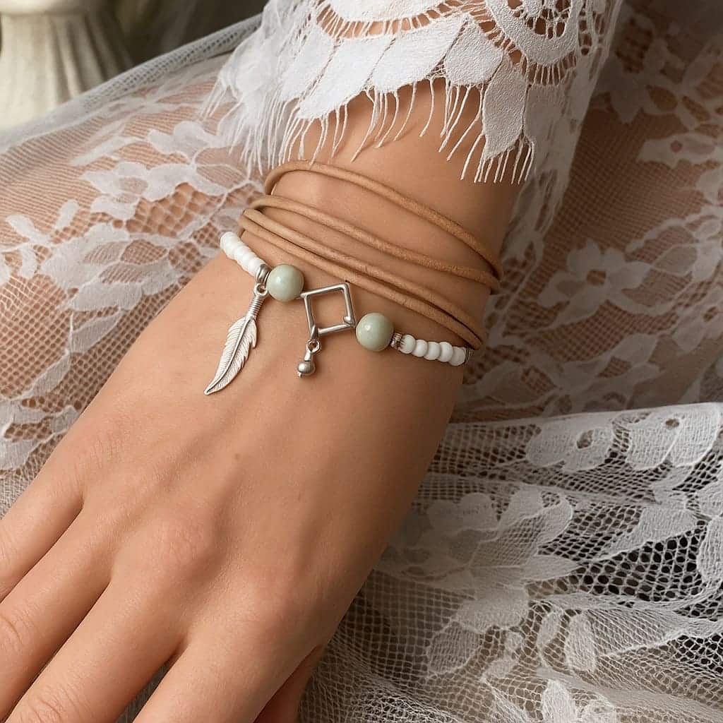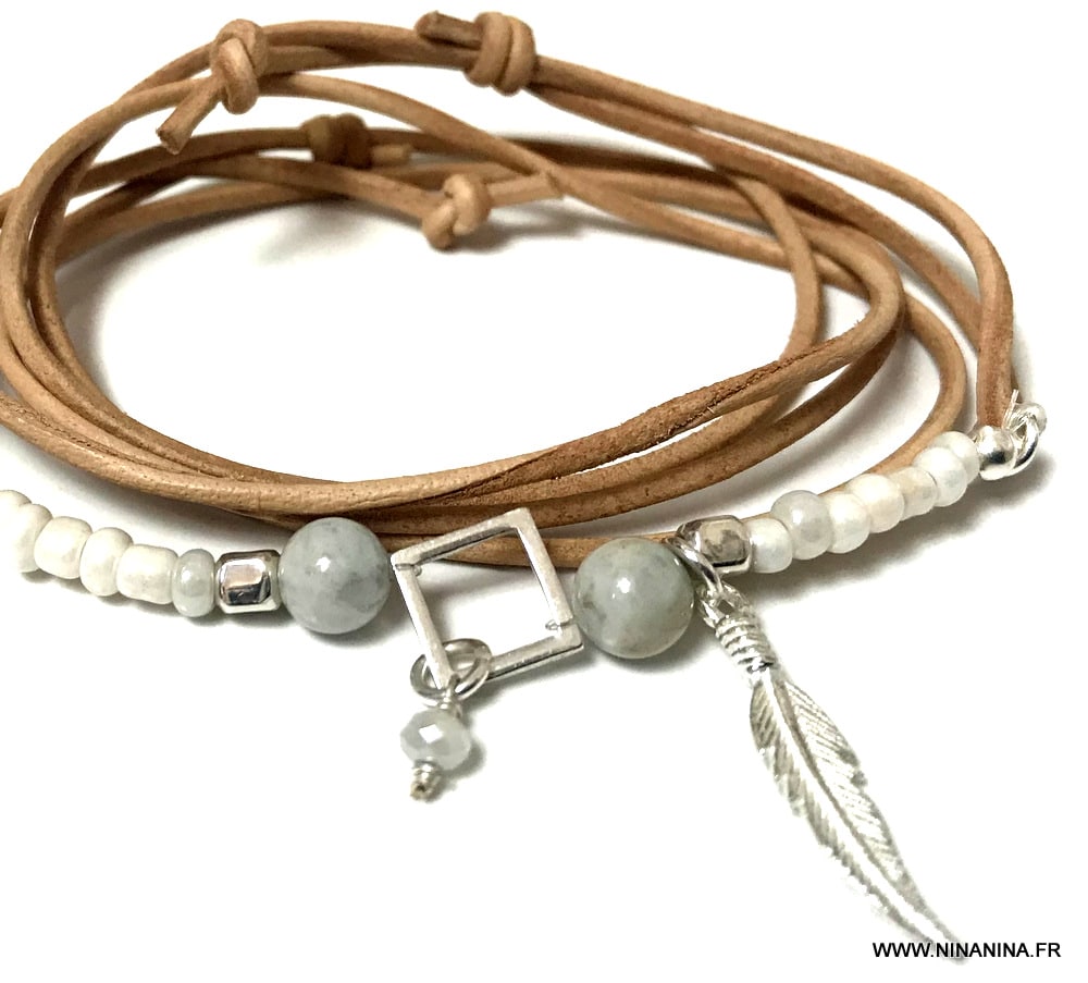 Bracelet artisanal multi tours : alliance du cuir, des pierres et de l’argent