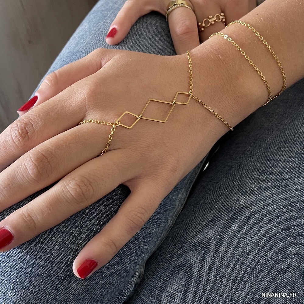 Portez ce joli Bijou de main tendance seul pour un look minimaliste ou mixé à d’autres Bracelets Bagues Ninanina.