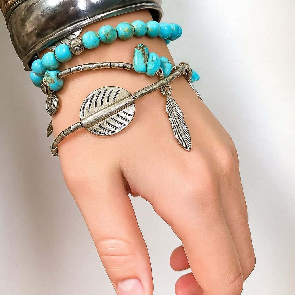 Bracelet bohème chic multi-tours : l’alliance du bleu turquoise et de l’argenté