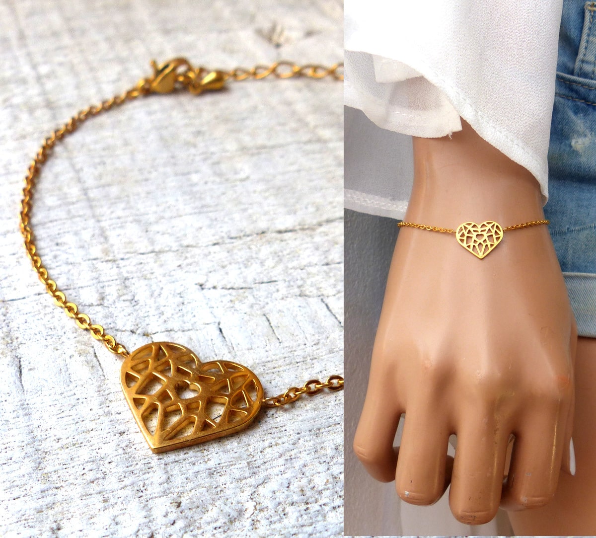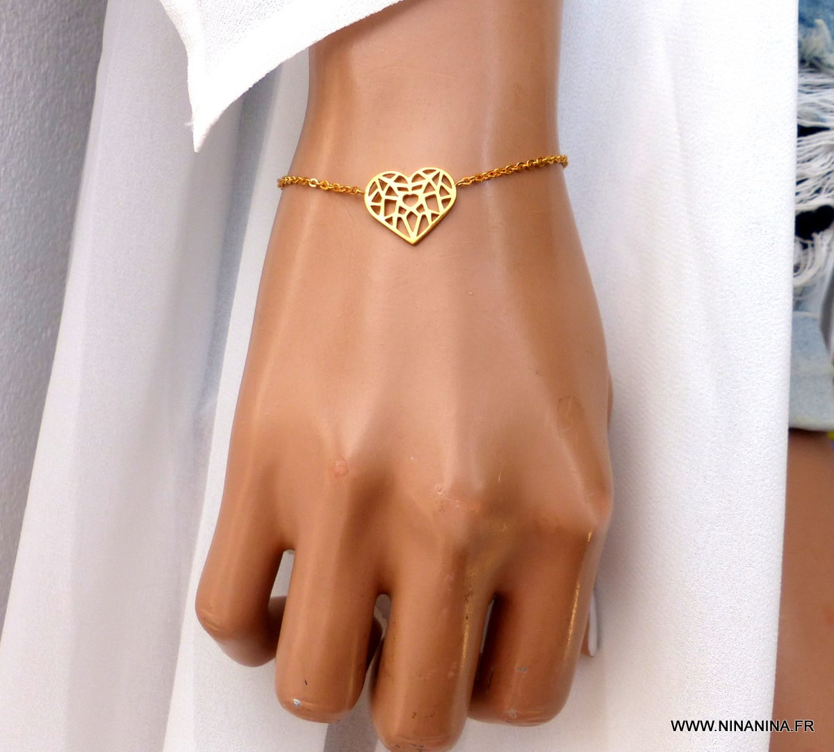 Bracelet Coeur femme Acier inoxydable doré filigrané