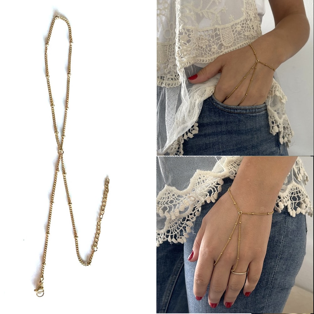 Cette jolie chaîne de main appelé également Bracelet bague est un bijou peu commun, qui peut se révéler d’une délicatesse et d’un raffinement exquis!