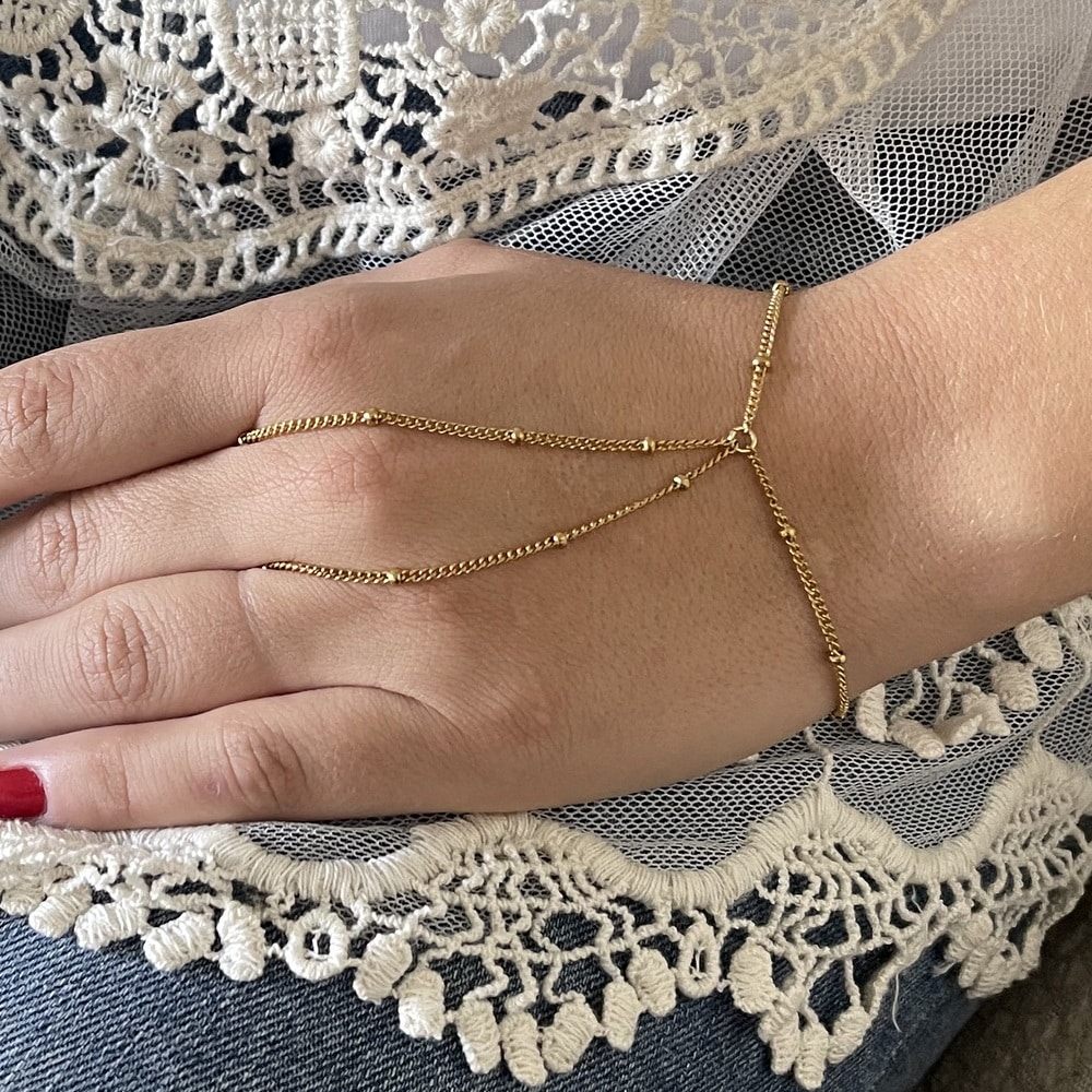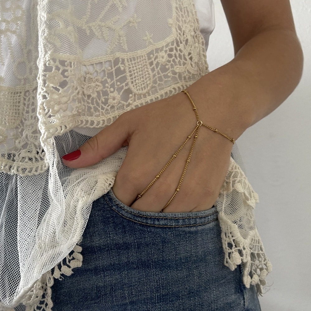 Portez ce joli Bijou de main tendance seul pour un look minimaliste ou mixé à d’autres Bracelets Ninanina.
