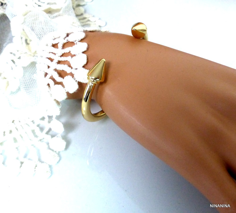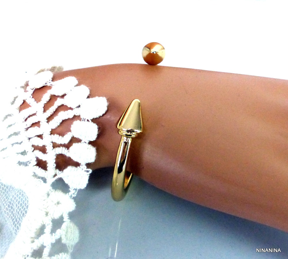 Bracelet ethnique jonc doré femme flèches terminé par deux flèches.
