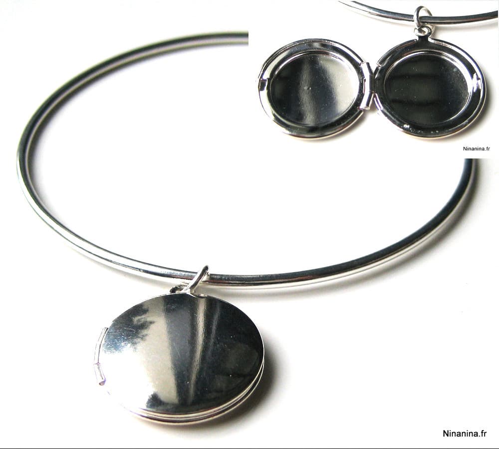 Bracelet jonc Argent plaqué pendentif porte photo