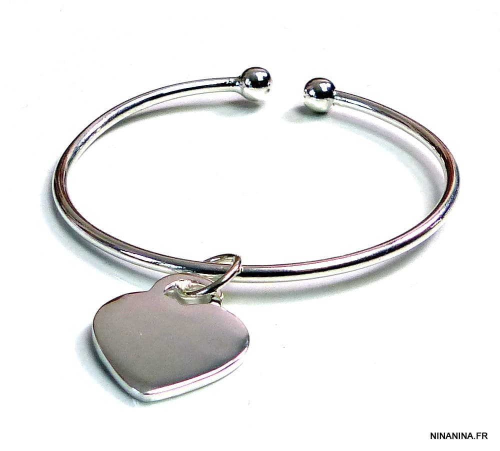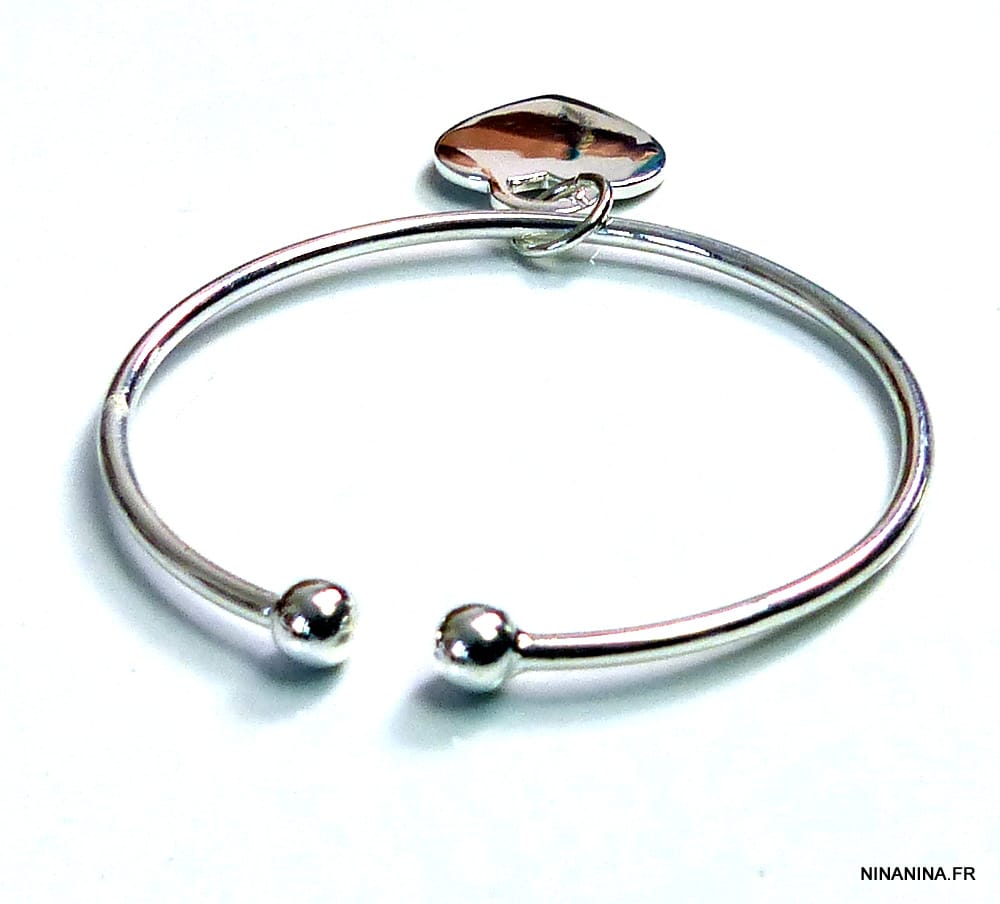 Bracelet Jonc Femme avec Pendentif Cœur en Argent Plaqué – Bijou Artisanal Fait Main