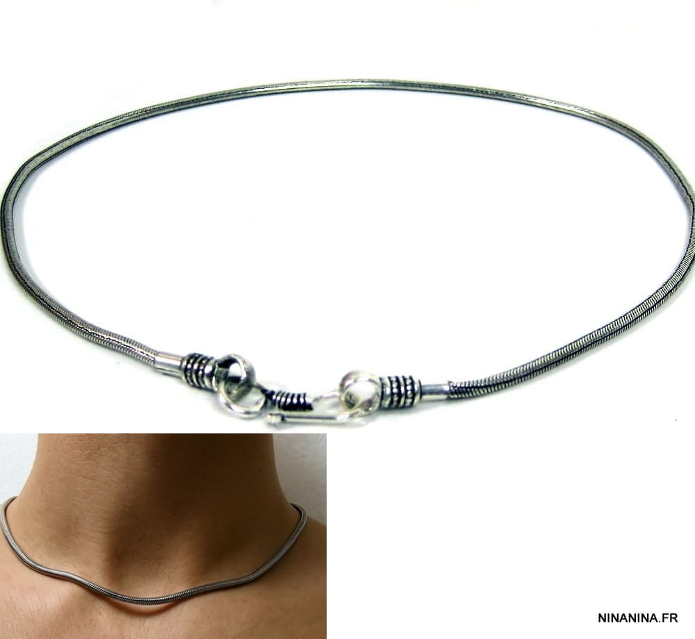 Chaine ethnique argent maille serpent homme avec fermoir crochet 52 cm