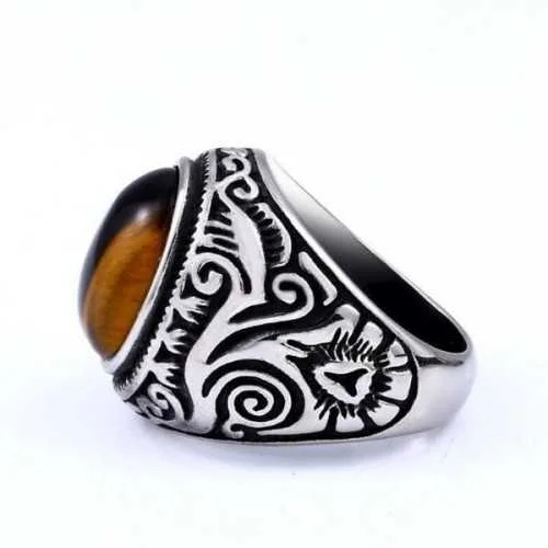 Chevaliere Oeil De Tigre Acier Inoxydable Pour Homme