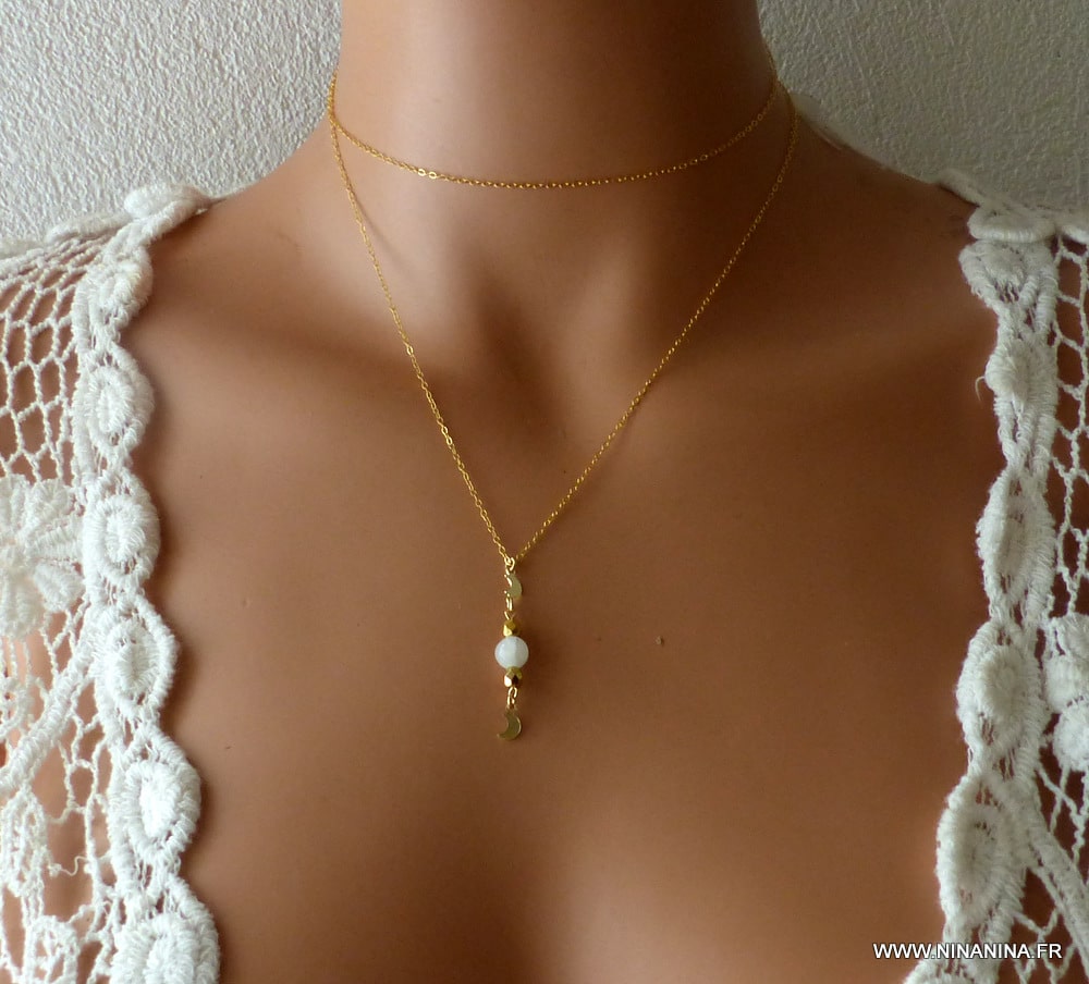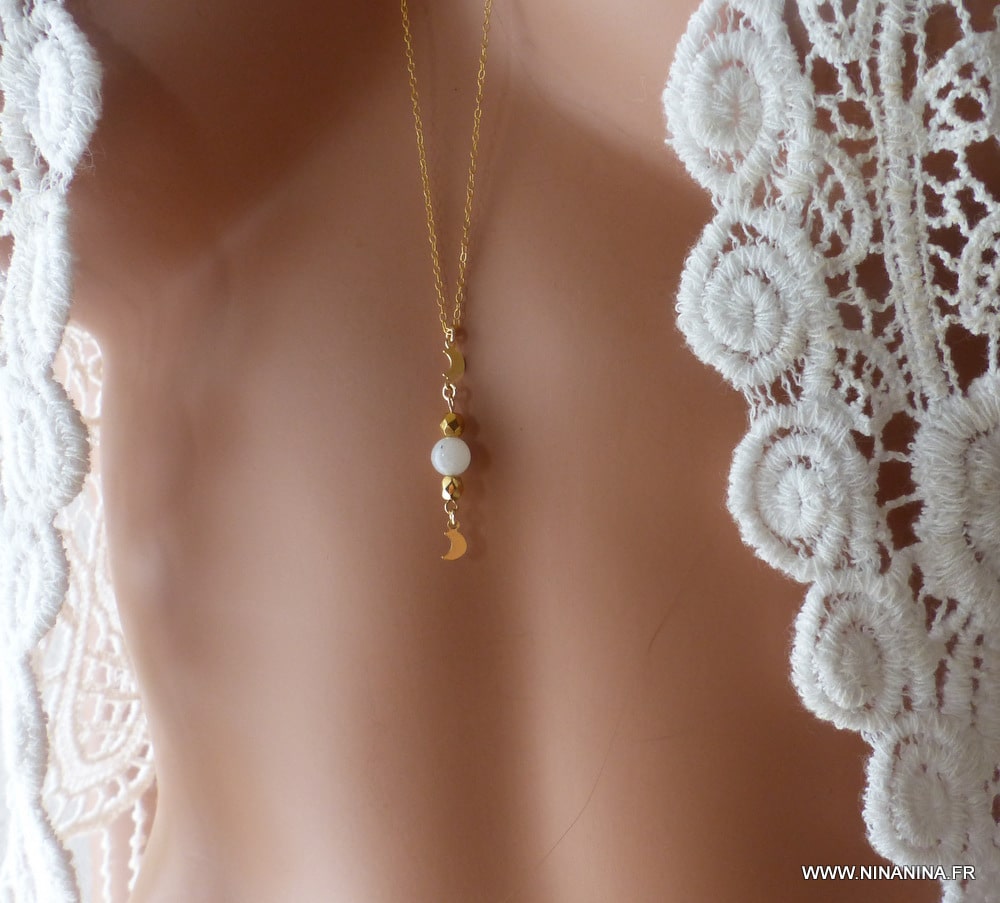 Collier avec pierre de lune – sautoir PlaquĆ© Or