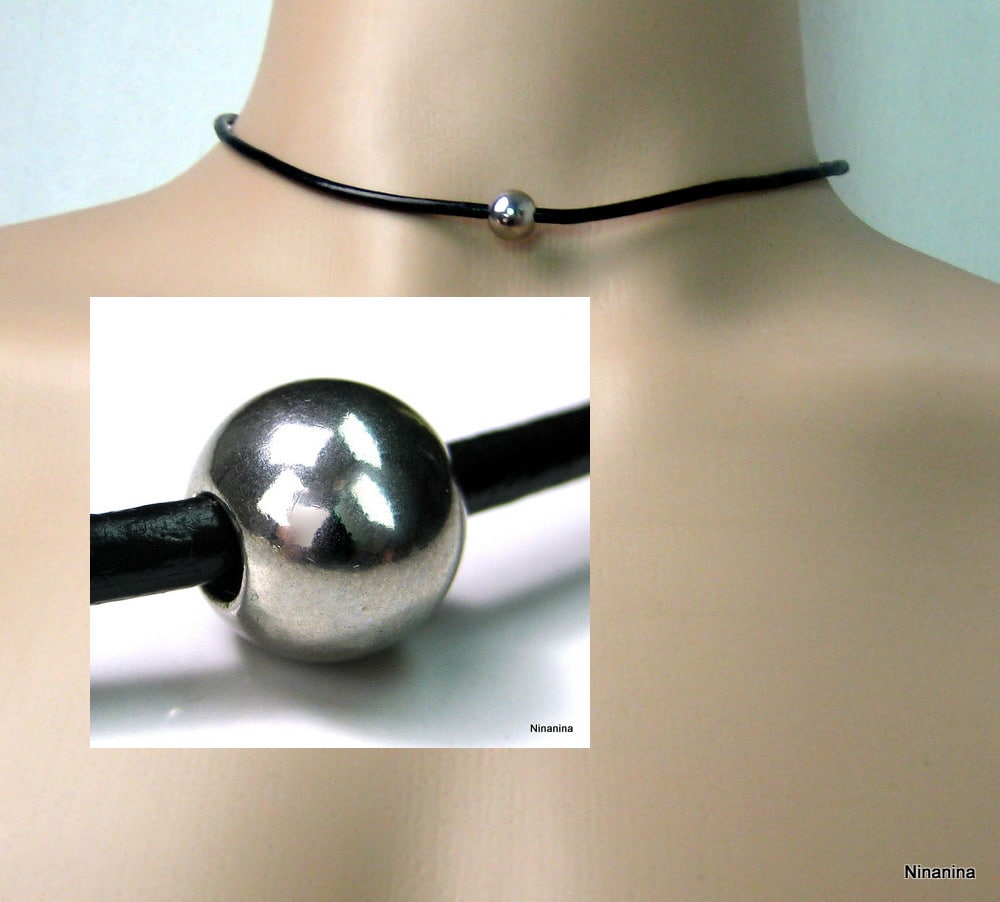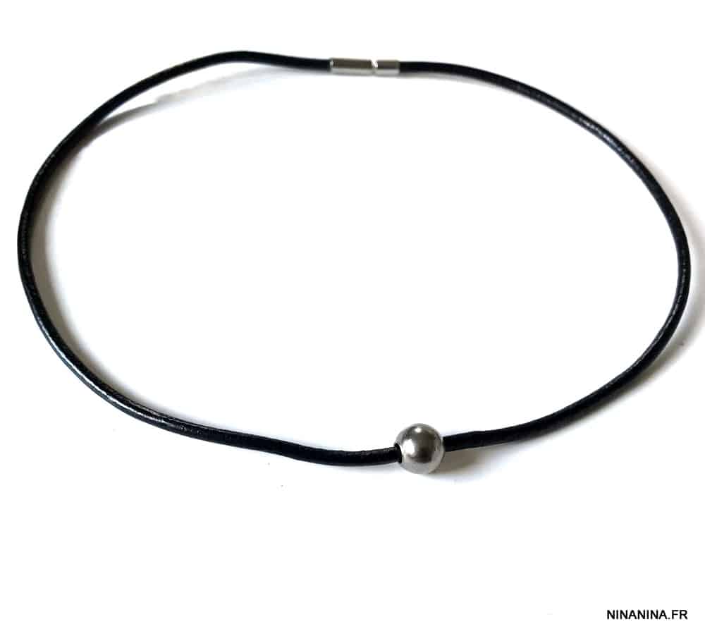 Ce collier homme cuir sobre, raffiné et élégant qui enlace le cou de sa lanière de cuir est composé d’une boule en acier inoxydable coulissant sur un lien en cuir noir de 3 mm de diamètre monté sur un élégant fermoir contemporain aimanté en Acier inoxydable argenté, sûr et facile d’utilisation. Dimentions de la boule : 1 X 0,9 cm.