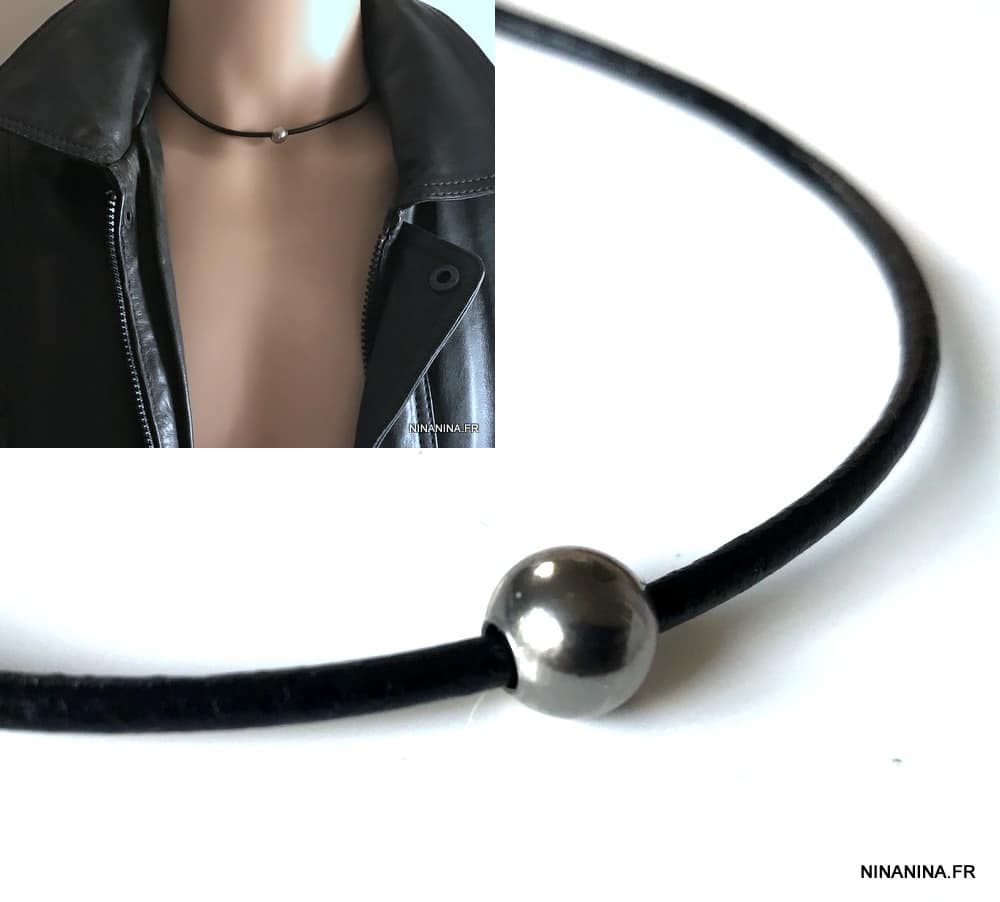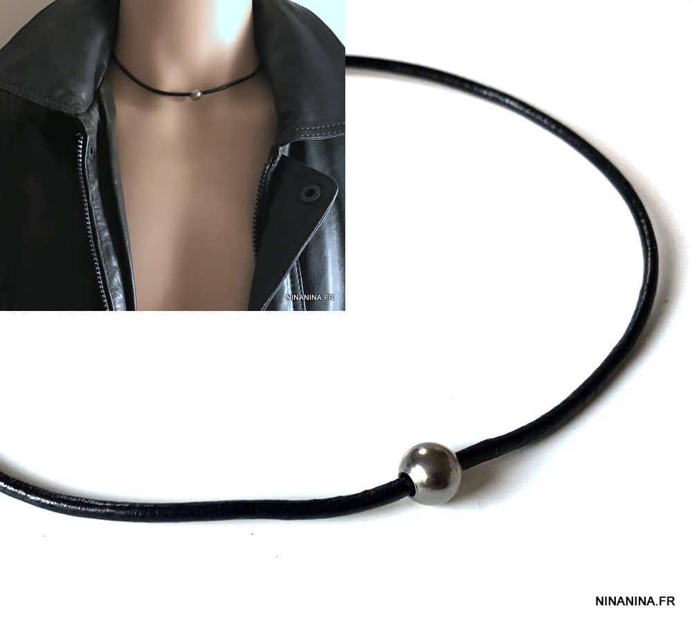 Un collier ras de cou cuir de fabrication française