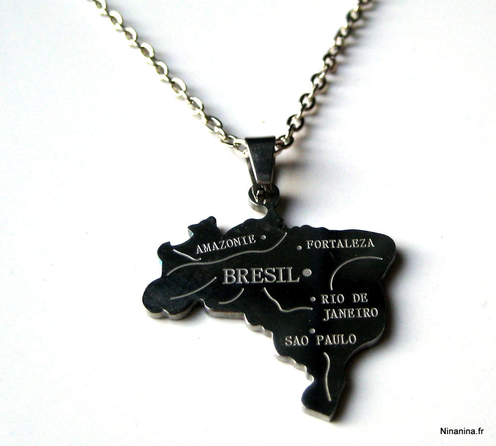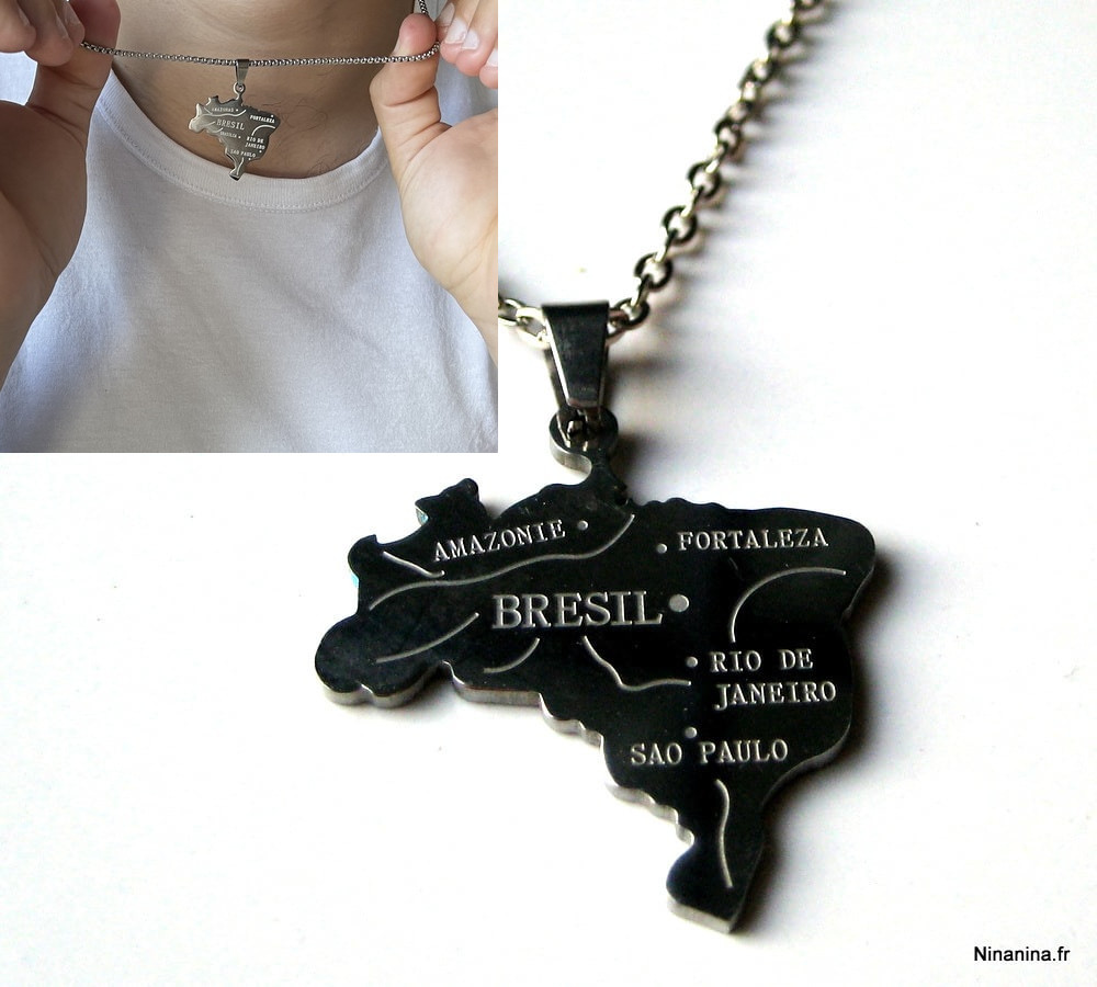 Collier Brésil Homme Pendentif Acier Inoxydable Argent