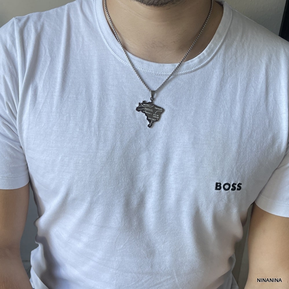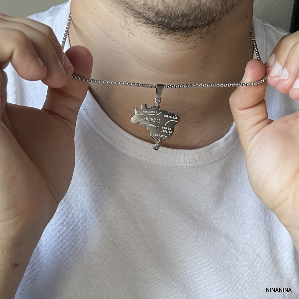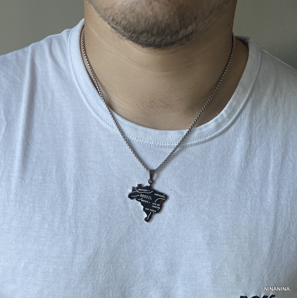 Soyez fier de vos origines et adoptez le style hip-pop à la mode pour femme ou homme avec ce Collier Brésil Homme Pendentif Acier Inoxydable Argent composé d’un pendentif carte du Brésil d’une qualité remarquable qui fait apparaitre les villes et les principaux fleuves brésiliens de manière extrêmement précise, monté sur une chaine maille forçat en acier inoxydable et terminé par un fermoir mousqueton sûr et facile d’utilisation.