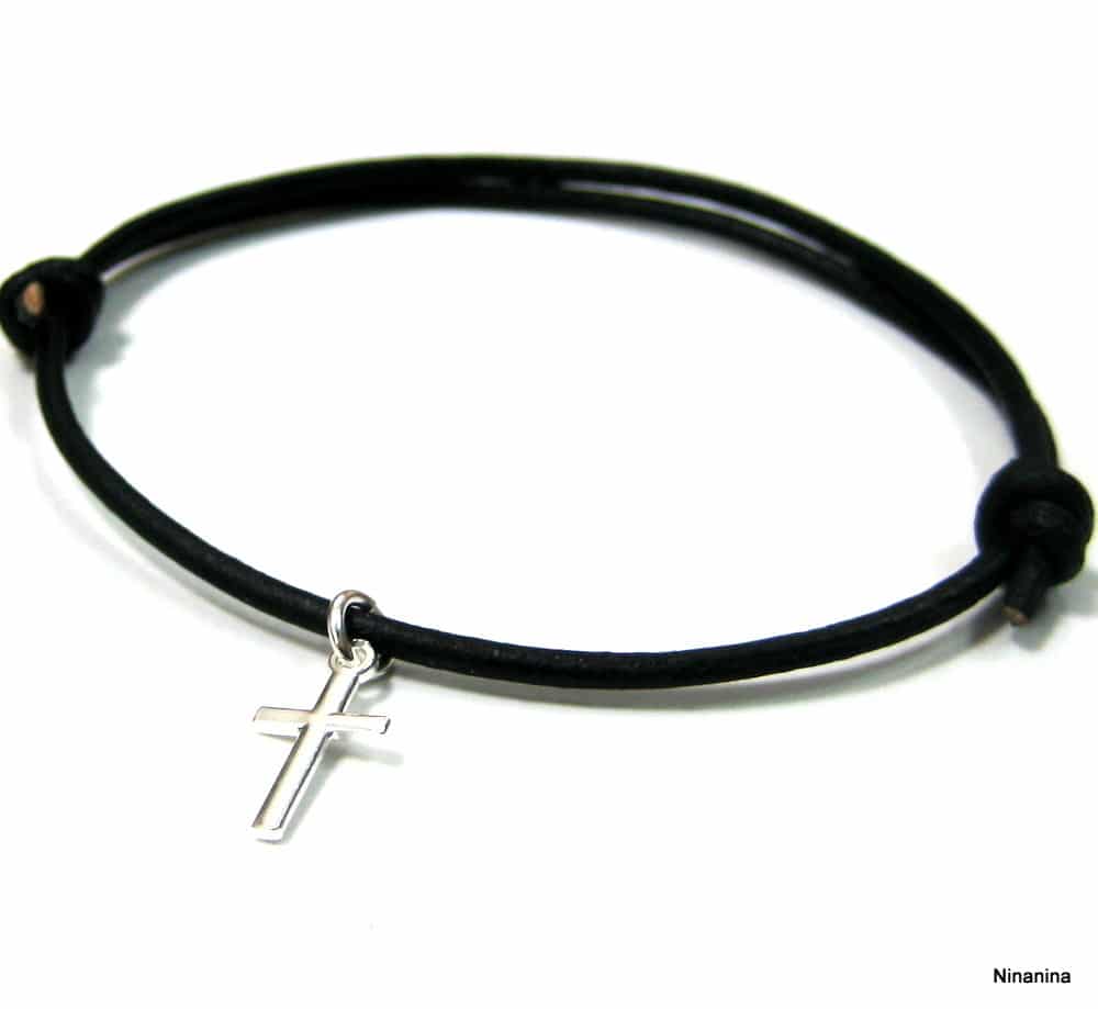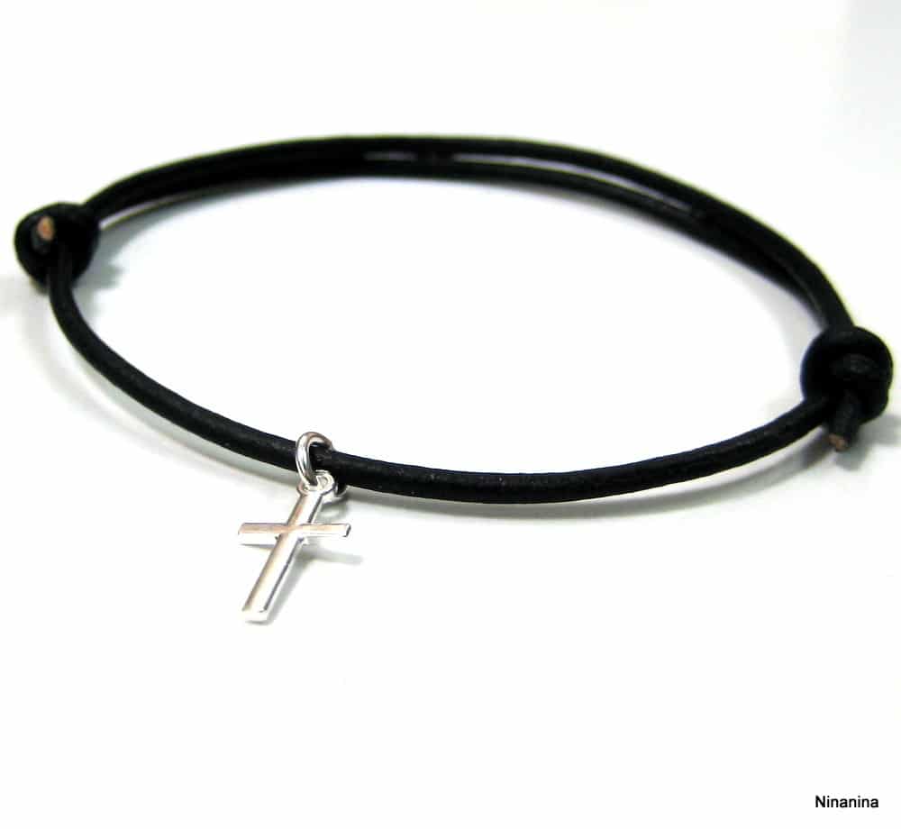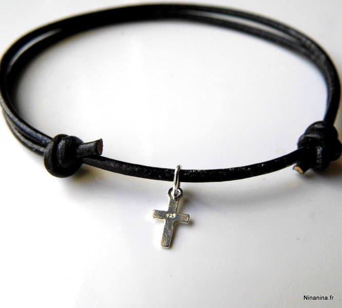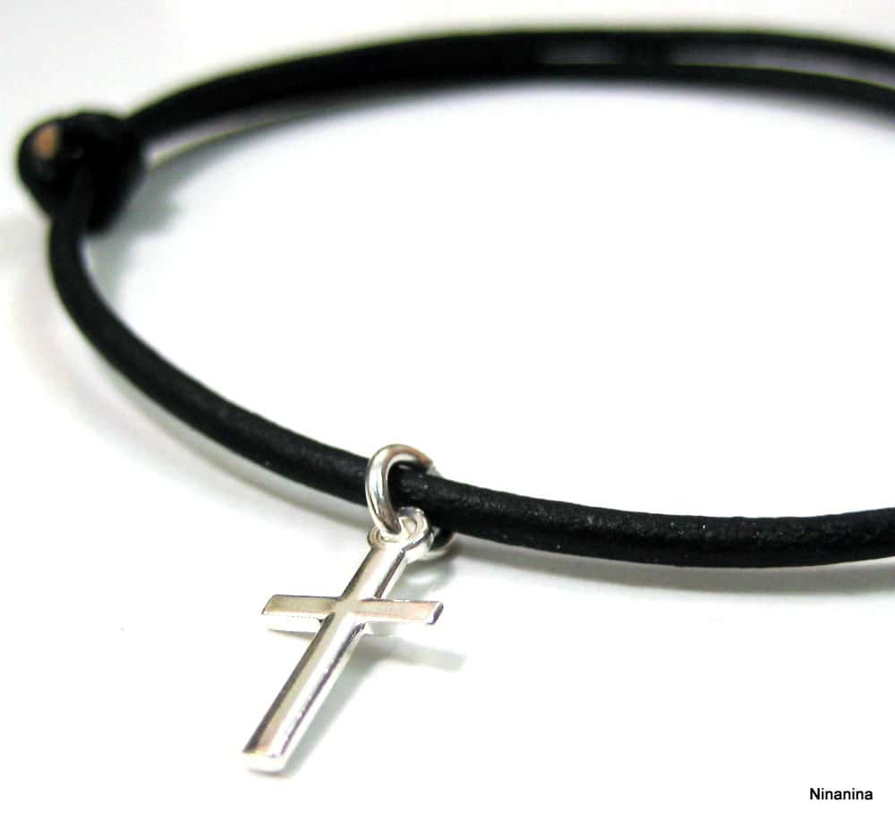 Collier croix Argent 925 massif et cordon cuir noir composé d’une croix en argent 925 montée sur un double cordon de cuir noir.