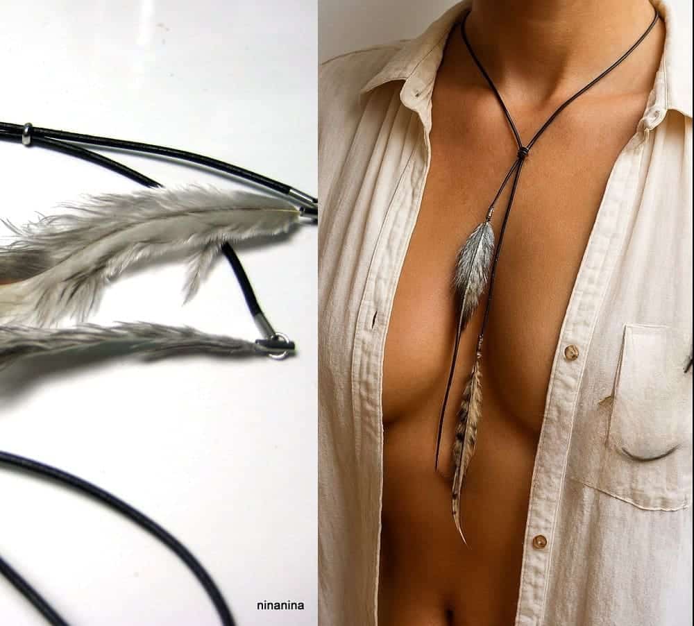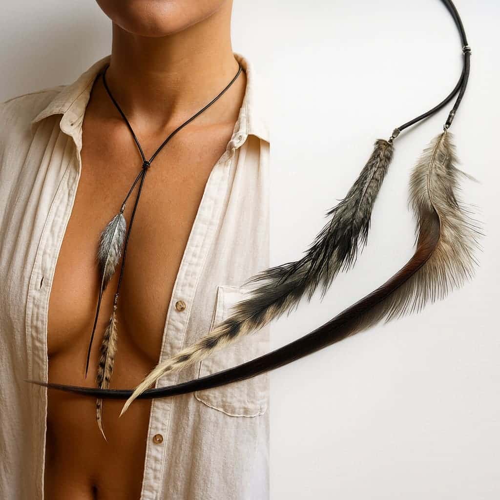 Comment porter ce collier en cuir et plumes avec élégance ?