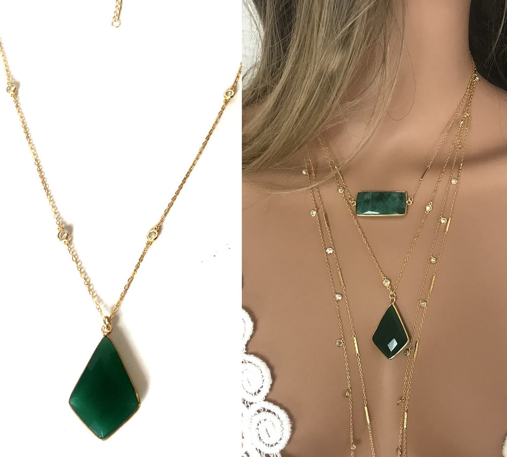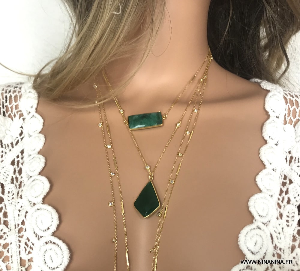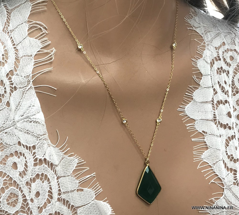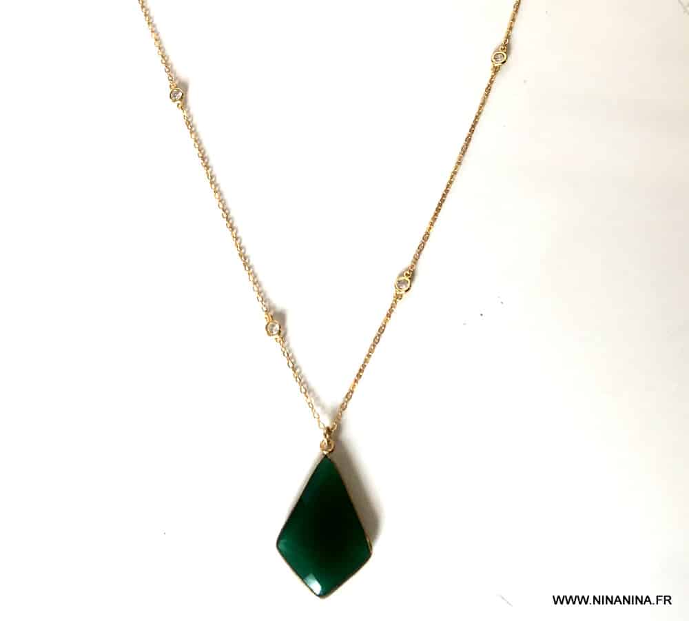 DƩcouvrez ce somptueux collier argent 925 plaquƩ or arborant un magnifique pendentif vert du plus bel effet, ce Collier pendentif vert en onyx et zirconium femme plaquƩ or Ʃblouira les amatrices de bijoux en pierres fines!