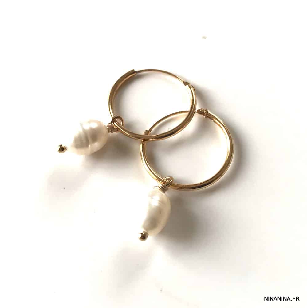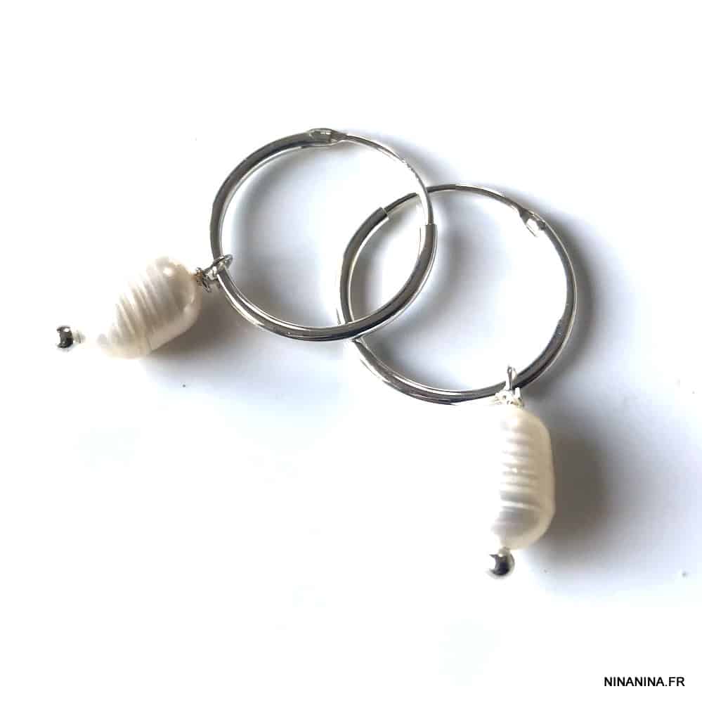 Creoles perles blanches d’eau douce et Argent 925