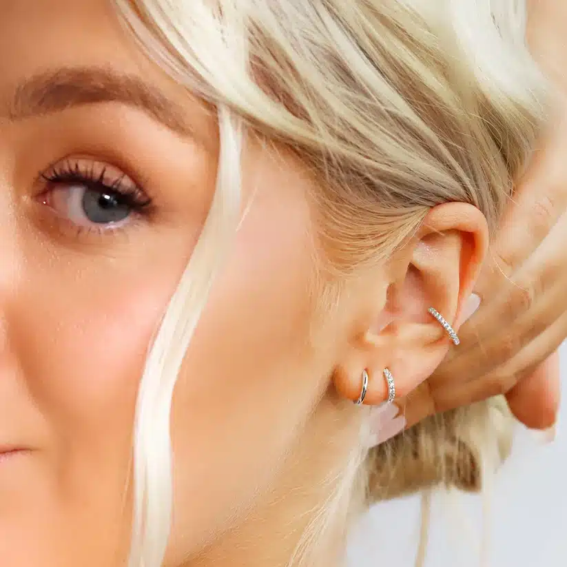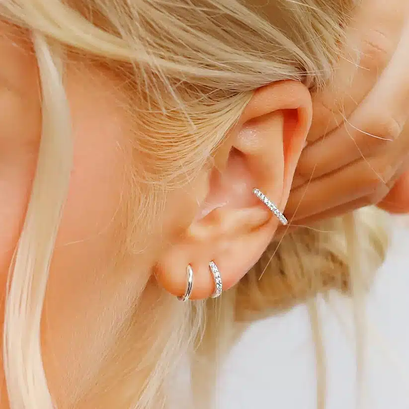 L’accumulation de bijoux est tendance et les boucles d’oreilles ne dérogent pas à la règle ! La nouveauté de la saison ? Le port de mini boucles d’oreilles en accumulation le long du lobe : en double, en triple, en mix and match… La mode des piercings multiples permet désormais à certaines de les multiplier.