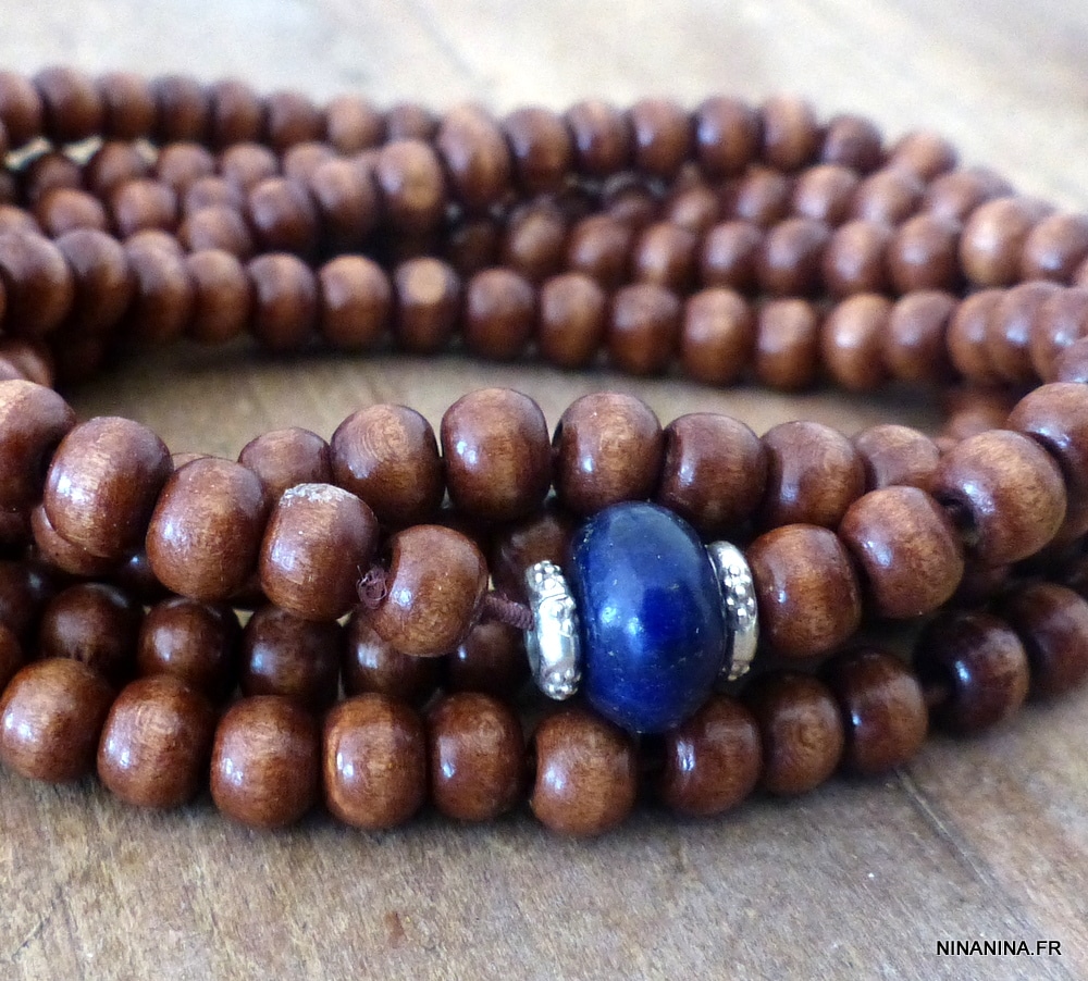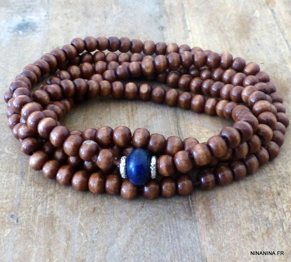 Lapis Lazuli Bracelet Homme perle bois multi tours
