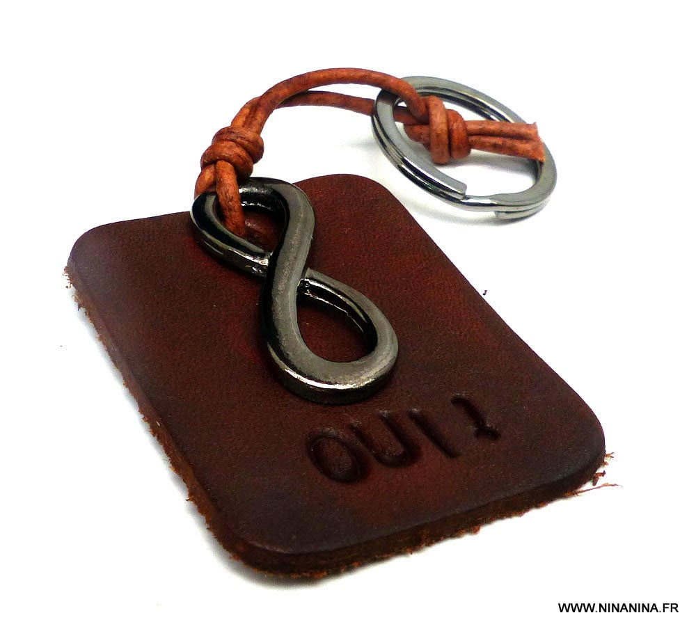 Porte clé homme cuir tressé et Acier inoxydable