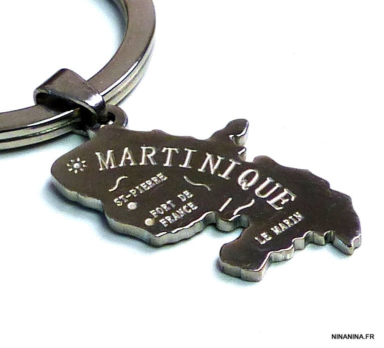 Porte clé homme pendentif MARTINIQUE acier composé d’un pendentif MARTINIQUE en acier inoxydable monté sur un anneau de porte-clé en métal argenté.