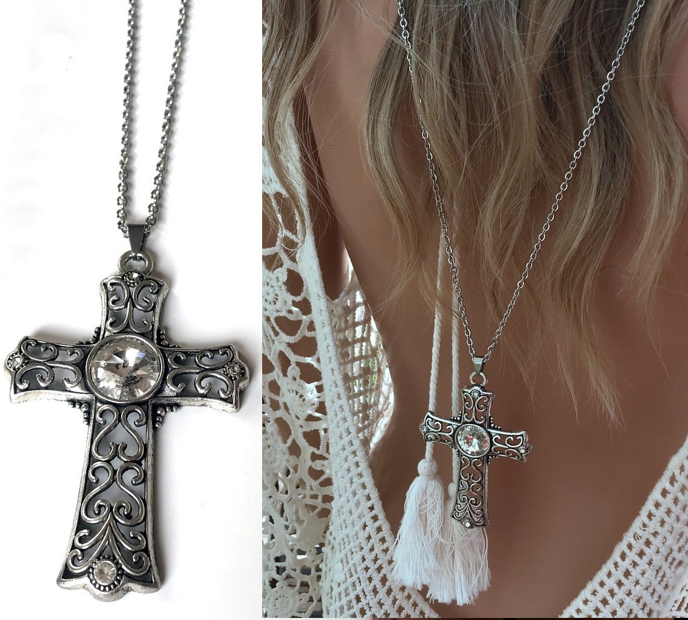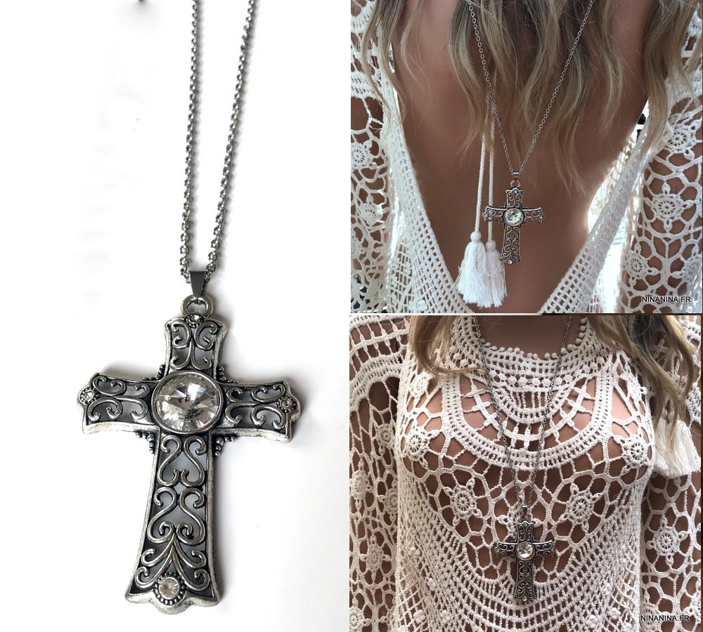 Sautoir croix fantaisie – Collier de dos long pendentif croix